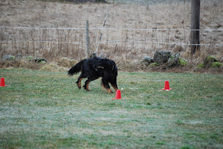 Idag träffades vi ett helt gäng på Kungälvs bk. De har lite problem med planen som syns i bakgrunden på många foton, men idag var marken frusen och bra. Vessla var först ut idag. Vi körde igenom alla hundar en och en idag, för att få möjlighet att hjälpa och lära av varandra. Vessla fick först ingång på plan och det gjorde hon riktigt bra!